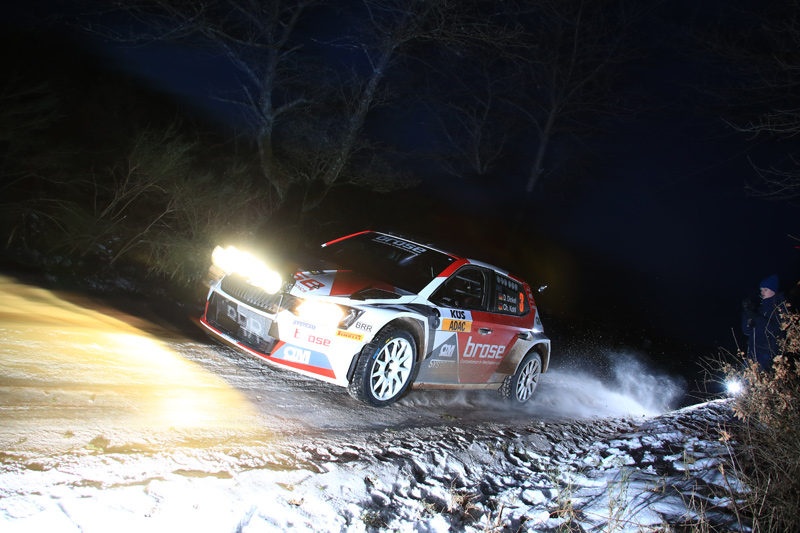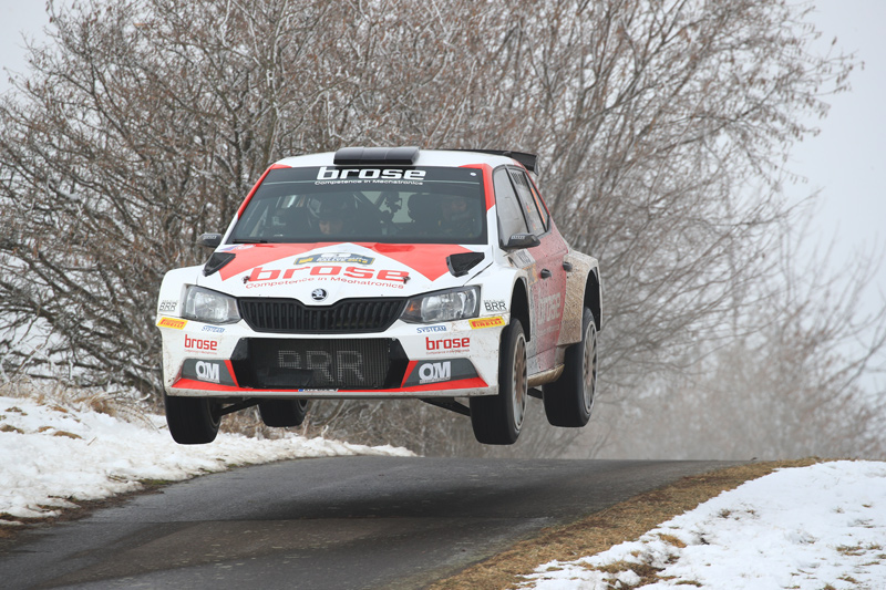 In der Nacht auf Samstag hört es auf zu schneien, die WPs werden vom Veranstalter zum Teil geräumt und mit Salz gestreut. Dennoch bleiben die Verhältnisse Monte-Carlo-like tückisch. Die erfahrene BRR-Servicecrew rund um Chef Raimund Baumschlager und Ingenieur Walter Illmer hat die Daten des Vortages gründlich analysiert und den 280 PS starken Brose Skoda Fabia R5 perfekt abgestimmt. Dominik Dinkel / Christina Kohl starten damit sensationell in den Samstag, nehmen dem vor ihnen liegenden Björn Satorius (Subaru Impreza) auf der 8,6 Kilometer langen WP Bosenberg 1 stolze 25,5 Sekunden ab, dem WM erfahrenen Leader Simone Tempestini sogar 37,9, das sind im Rallye-Business Welten. Der folgende Rundkurs Windpark ist eine von Dominik Dinkels Lieblingsstrecken. Leider wird die Erstbefahrung nach dem Ausritt eines Mitbewerbers abgebrochen. Zu diesem Zeitpunkt sehen die Splitzeiten das Brose Team gute 12 Sekunden in Front. Einen Vorteil können Dinkel / Kohl daraus allerdings nicht ziehen, die Rallyeleitung teilt allen Startern eine Einheitszeit zu. Am Ende des Vormittags steht der Windpark noch einmal auf dem Programm, Dominik Dinkel / Christina Kohl sind hier Extraklasse, lassen auf den 26,2 Kilometern den Citroen DS3 R5 von Tempestini / Itu 23,7 Sekunden hinter sich, nehmen dem drittschnellsten Roman Schwedt (Peugeot 207 S2000) mehr als eine Minute ab. Der Rückstand auf den Rallye-Leader ist auf 23,7 Sekunden zusammengeschmolzen, der Vorsprung auf den drittplatzierten Ron Schumann beträgt fast 3 Minuten.